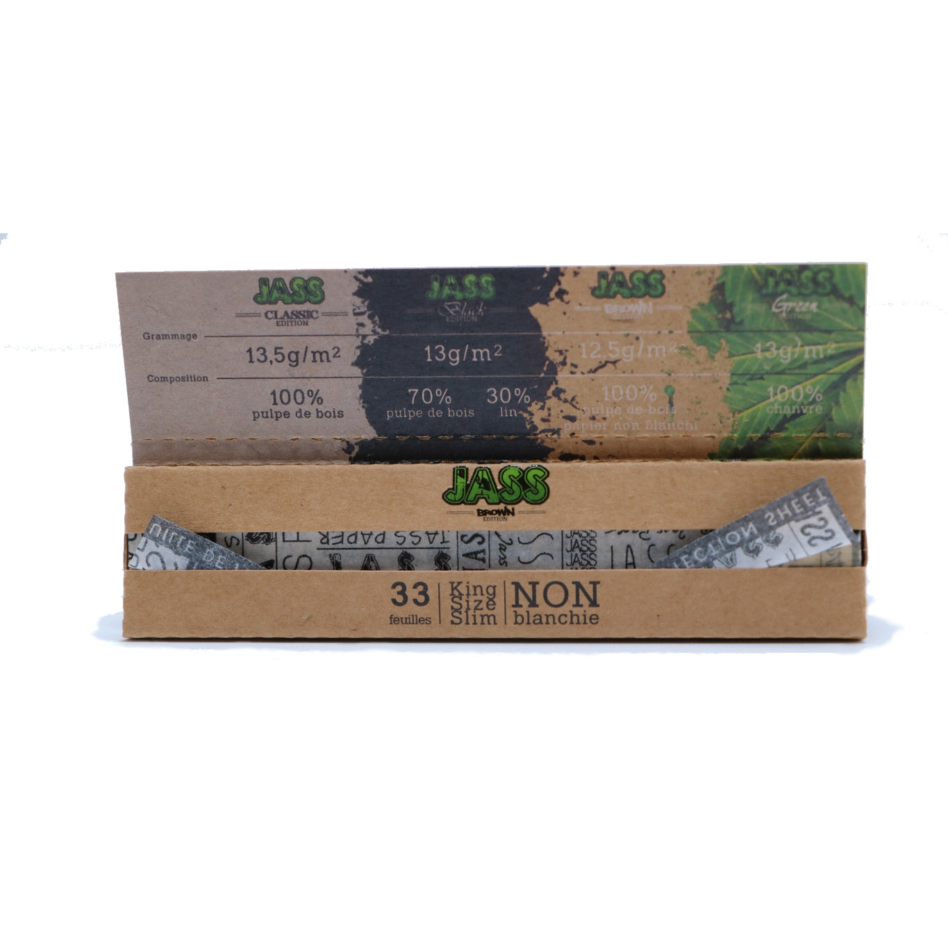 Découvrez l’authenticité et la qualité avec les feuilles Jass naturelles non blanchies, au format Slim (grandes feuilles), parfaites pour les amateurs de roulage exigeants. Sans additifs ni agents de blanchiment, ces feuilles offrent une expérience de fumée plus pure, saine et respectueuse de l’environnement.